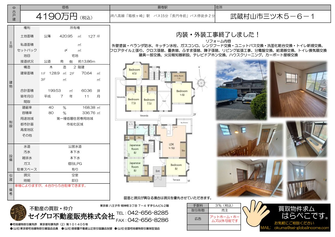 武蔵村山市三ツ木中古戸建、ご成約しました!