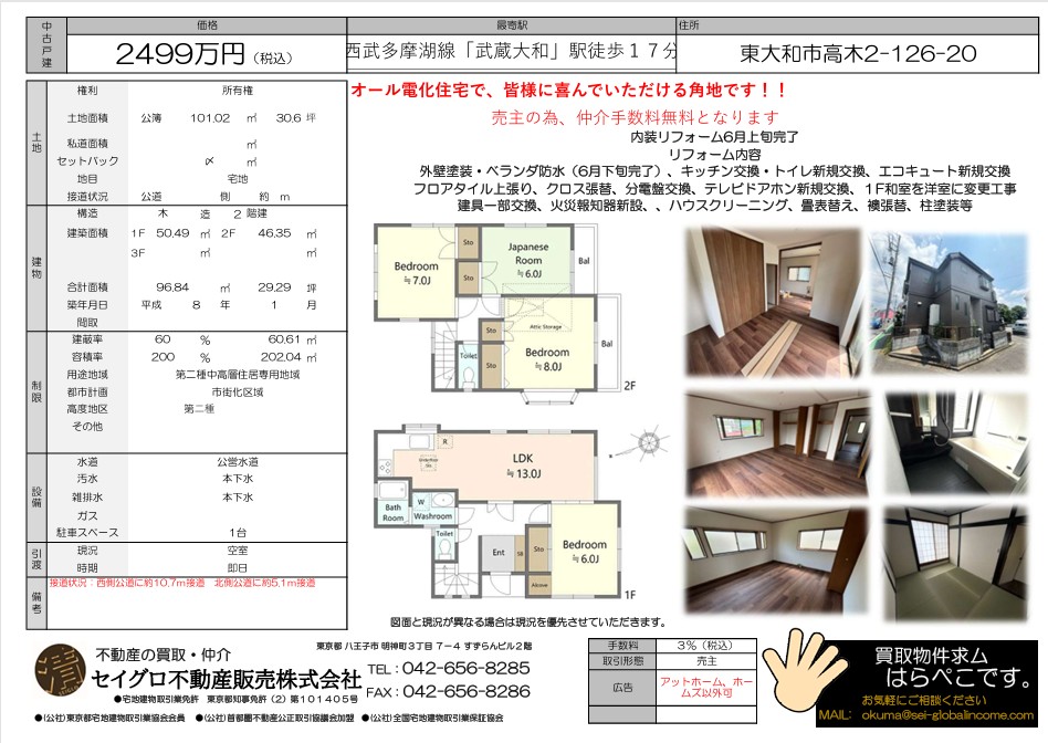 皆様のおかげで、東大和市高木中古戸建がご成約になりました。