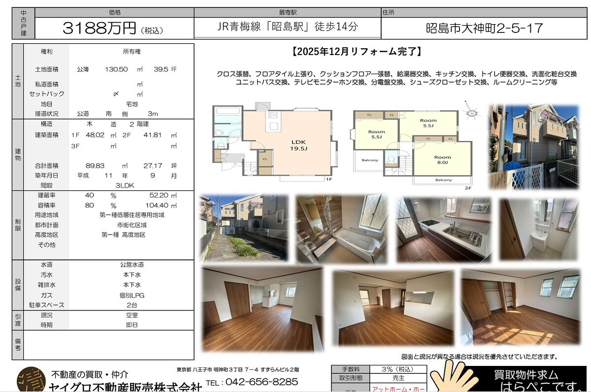 皆様のご協力により昭島市大神町の中古が成約しました。